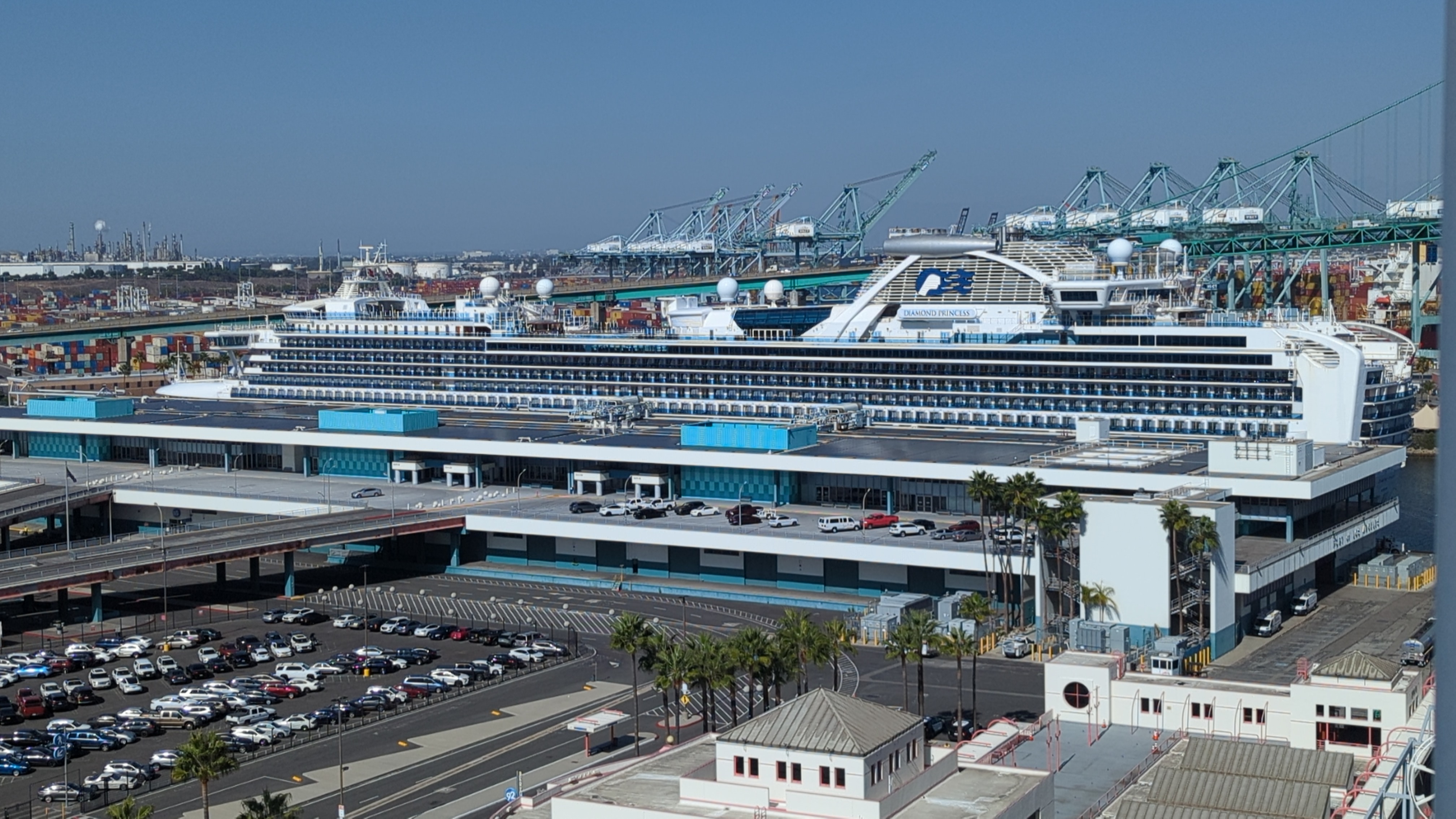 We’re sitting at the World Cruise Center near the Diamond Princess. You’d recognize where they are docked if you’ve ever watched The Love Boat.
