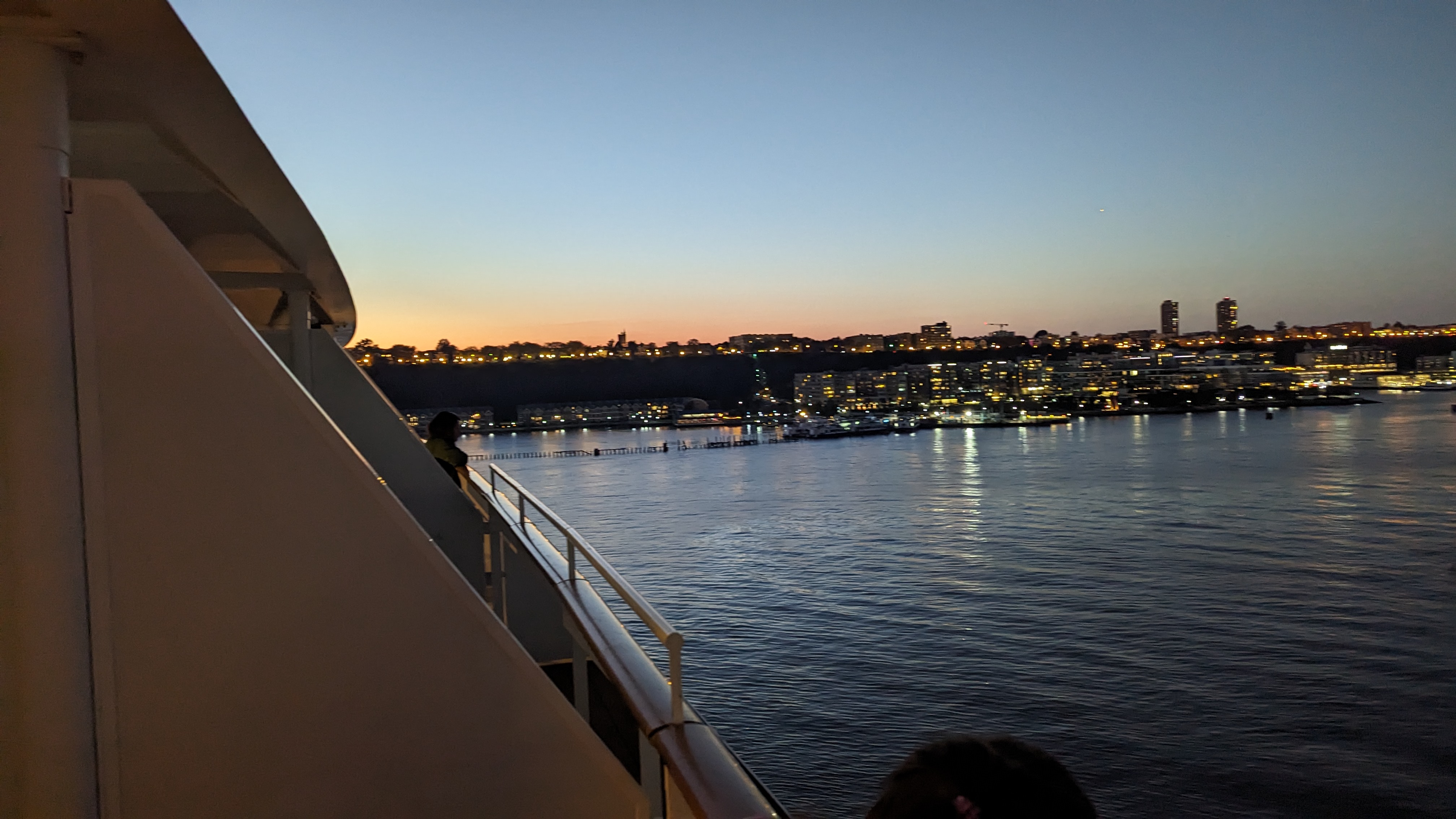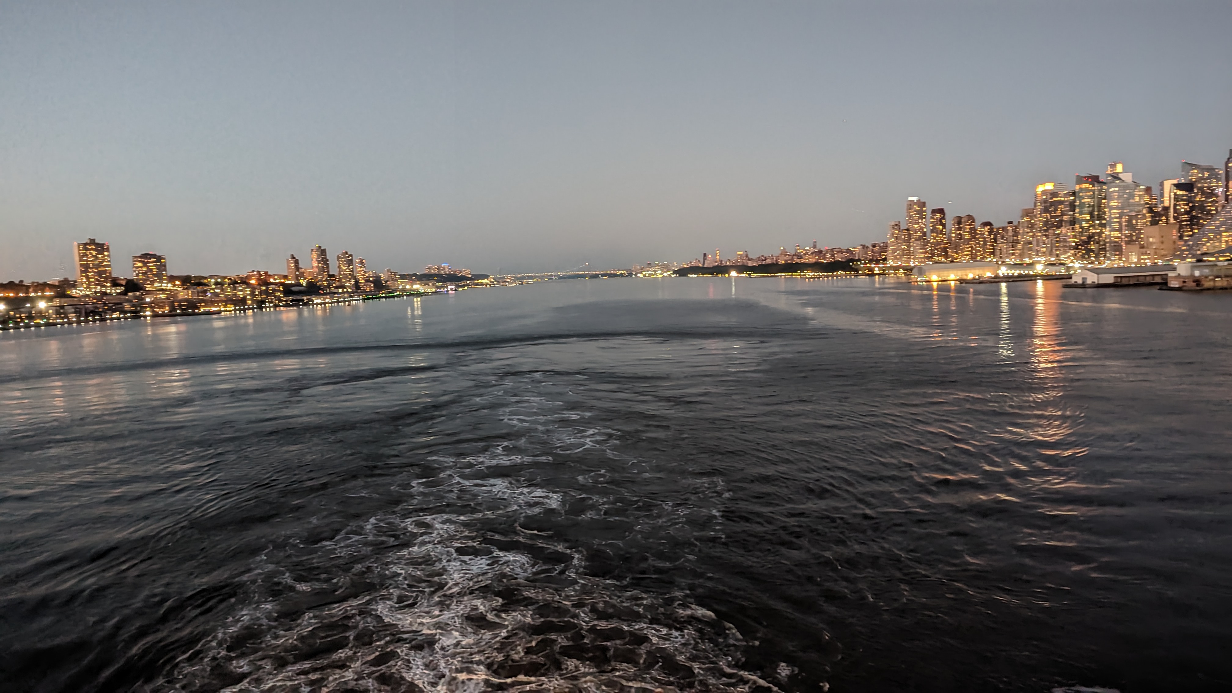 Encore sailed late, I’m not sure why. But we were able to make a pretty good thing of it with some unexpected dusk video of the skyline.