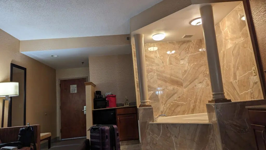 I’d totally forgotten I’d booked a Jacuzzi room tonight, but given the 12+ hour drive, I know why I did!