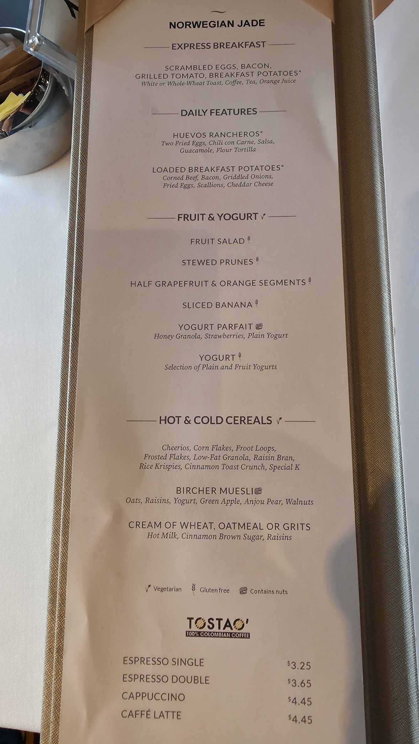 Looking at my camera roll, it appears I forgot to take any breakfast photos. But then again, I suppose if you’ve seen one photo of the NCL French Toast, a glass of juice, a ham and cheese omelette, and a few strips of bacon, you’ve seen them all. So that’s what we’ll go with! As for the ambiance, the Main Dining Room experience isn’t really superior or inferior to any of the others, it’s more a matter of taste. Our tastes run more toward O’Sheehans (or the Local), though…it’s just more “homey.” We’ll probably hit the buffet tomorrow, though (I’m writing this Wednesday evening as we depart Mazatlan).